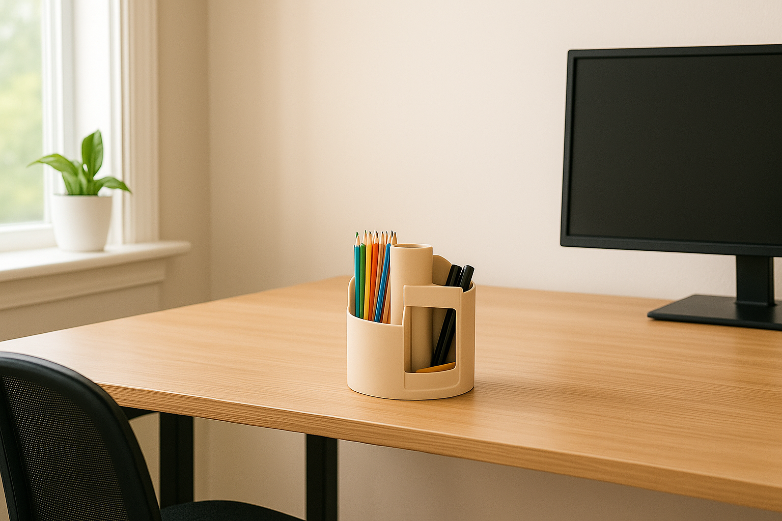Beżowy pojemnik na długopisy z 3 przegrodami
